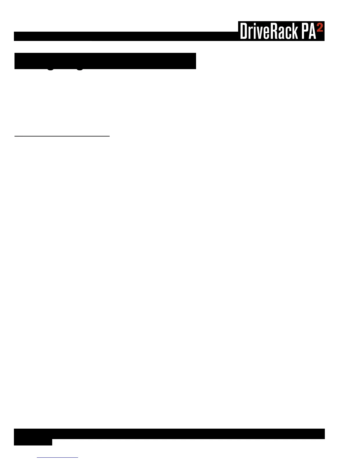 This section of the manual describes how to configure the DriveRack PA2 for your application. The easiest way to configure