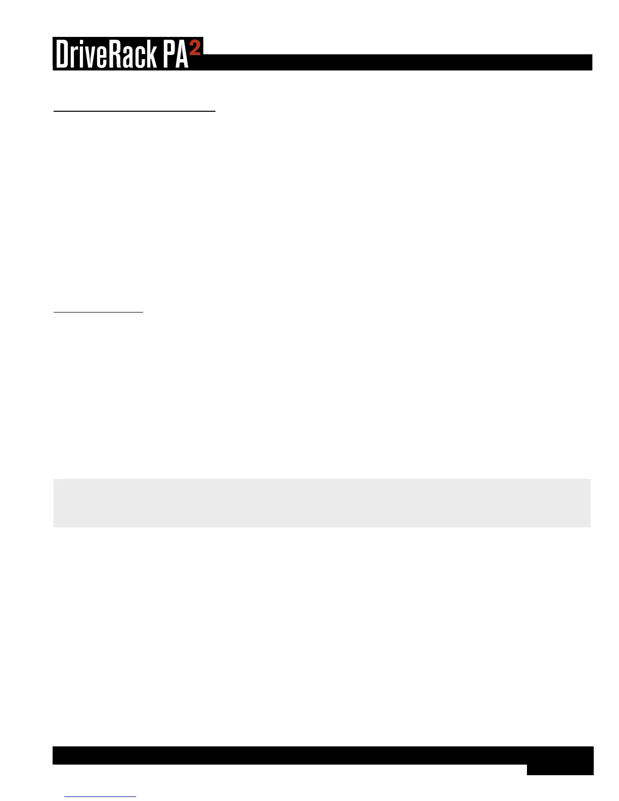 The DriveRack PA2 has two types of presets: user and factory. The user presets occupy preset memory locations1–75. The