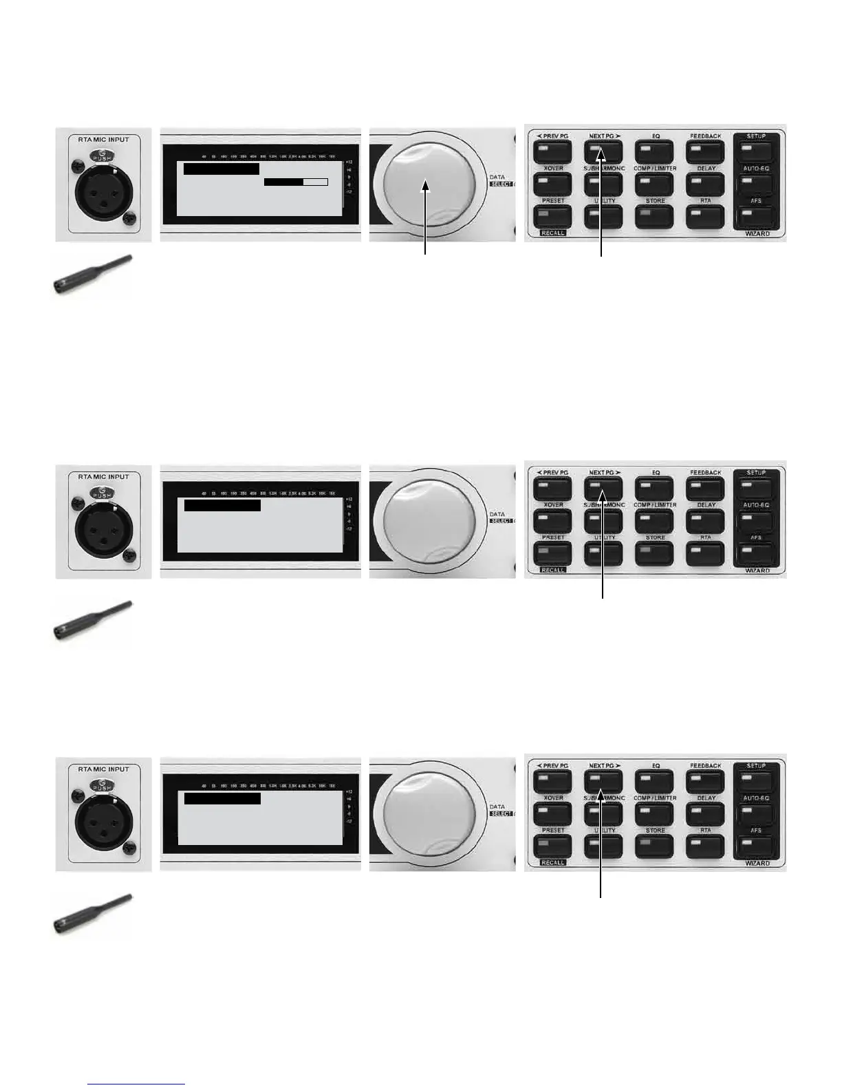 When performance level is reached, press the NEXT PG button. The DriveRack PA+ will now adjust the balance