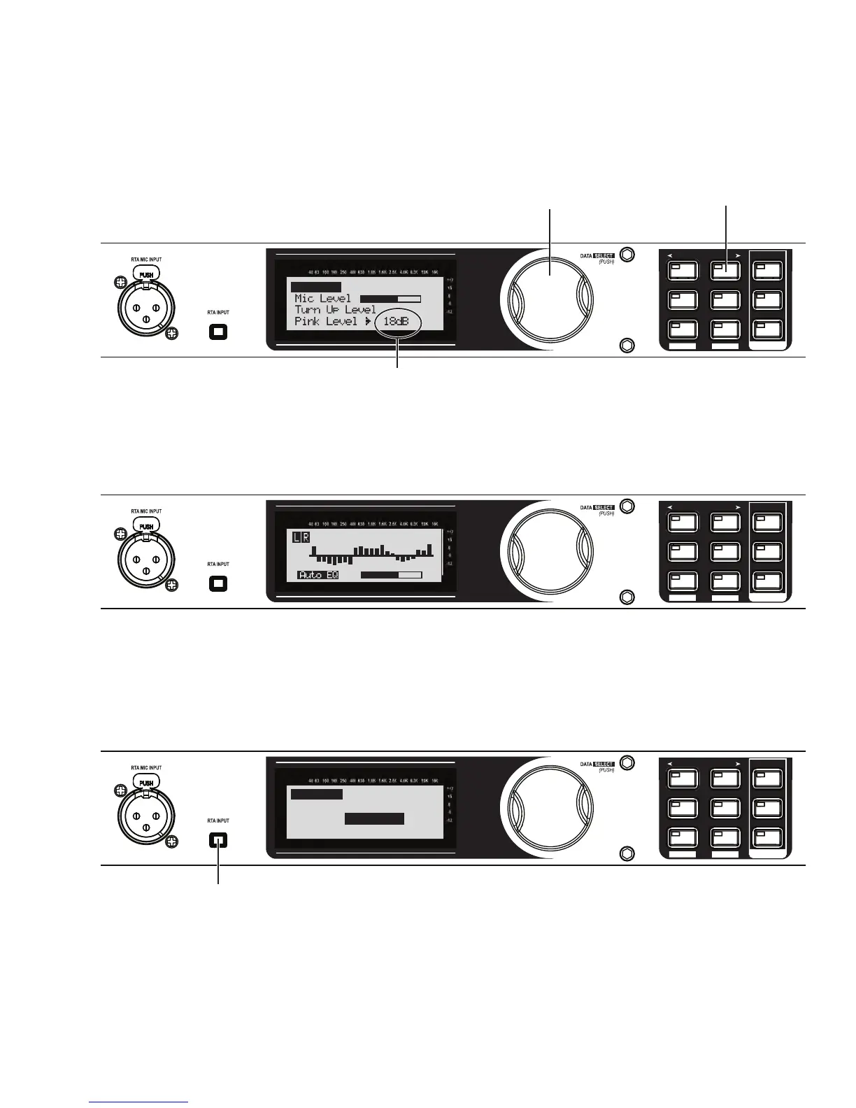 Turn the Data Wheel until pink noise is playing through your speakers at performance level. The words