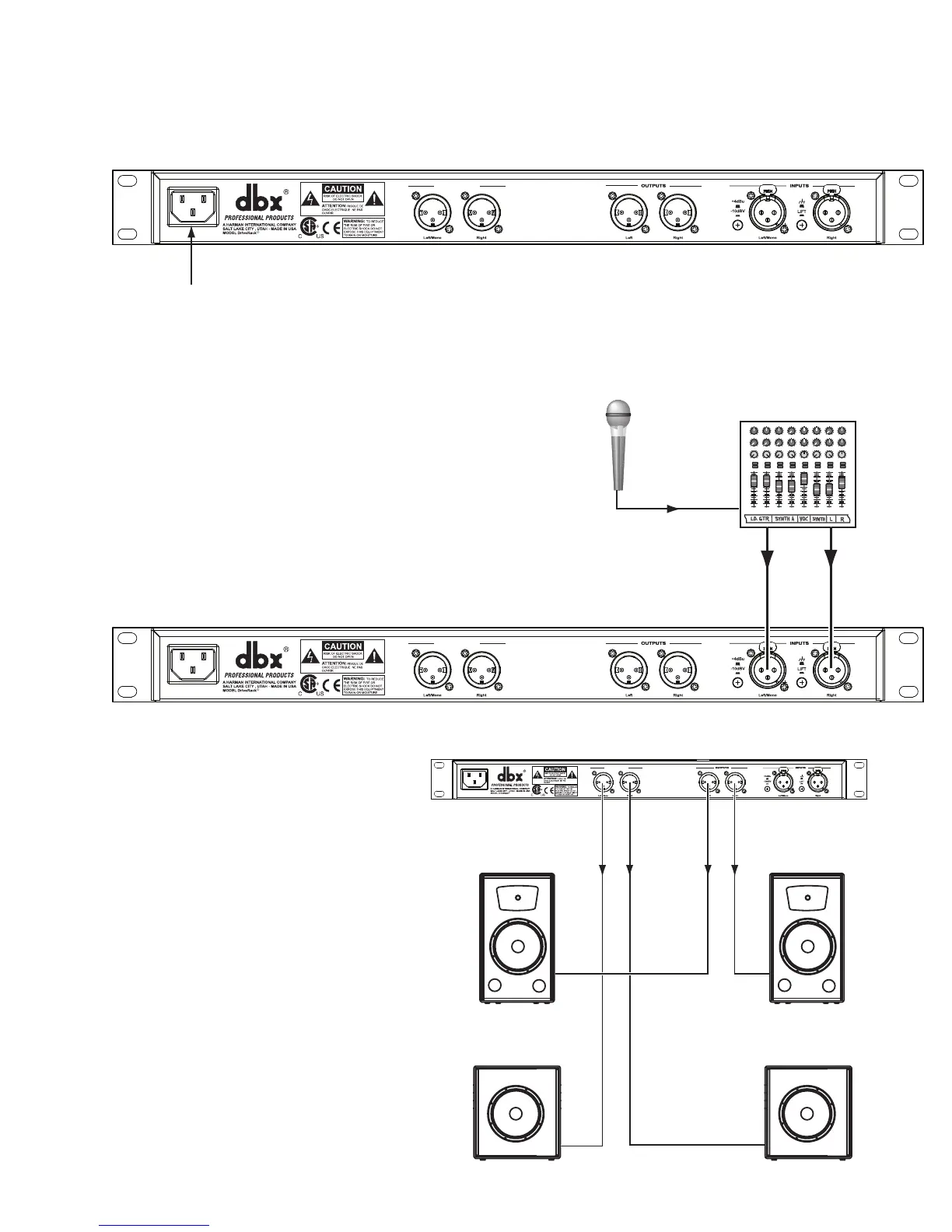 Connect the mixer left and right outputs to the DriveRack PX Left/Mono and Right Inputs.