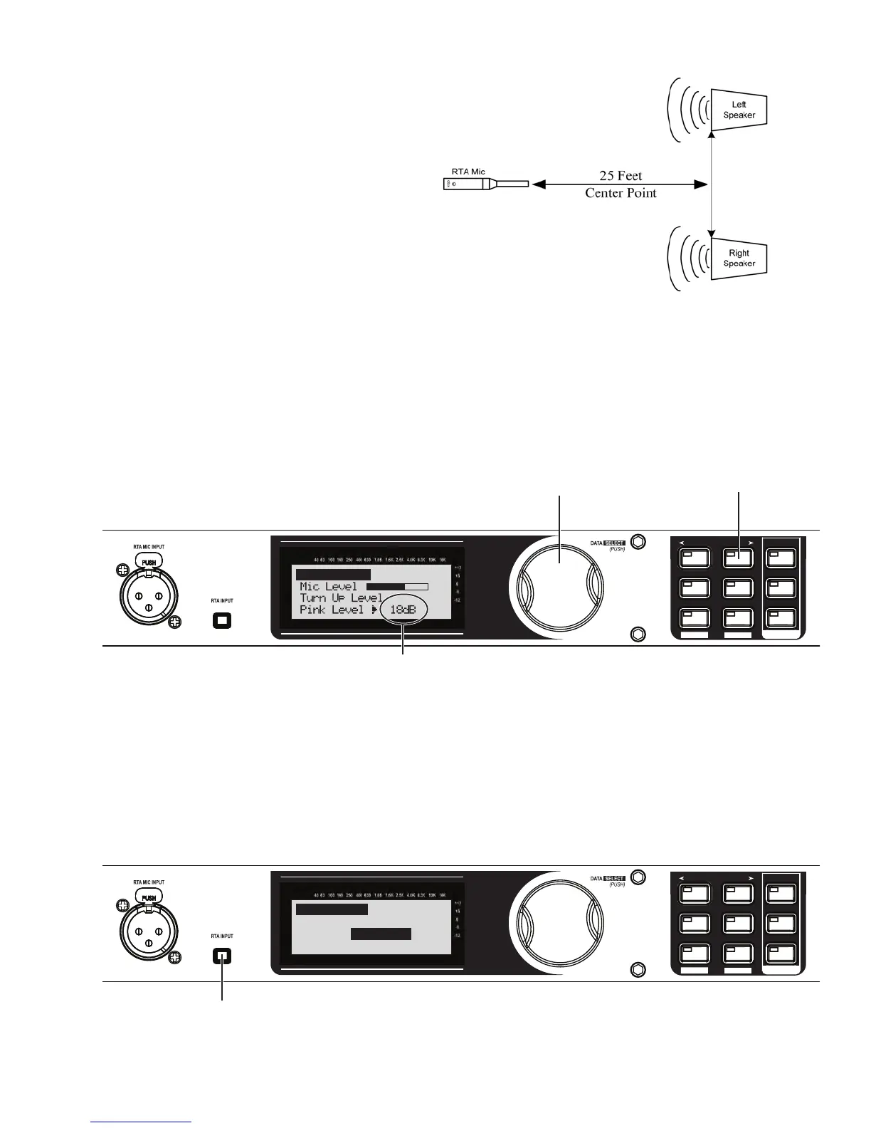Turn the Data Wheel until pink noise is playing through your speakers at performance level (the same