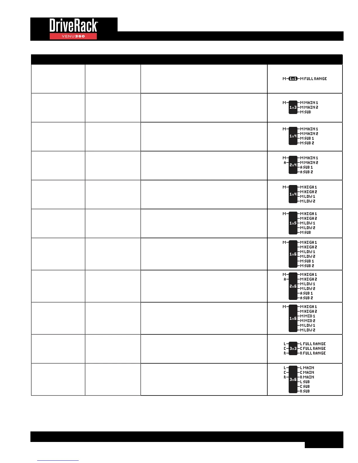 User Preset # Factory Preset # Name Crossover Configuration