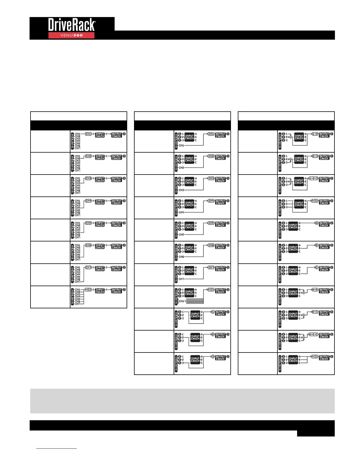 chains. On the input processing chains, signals can be mixed or routed from any of the 7 direct inputs (e.g., Analog1, Analog2,