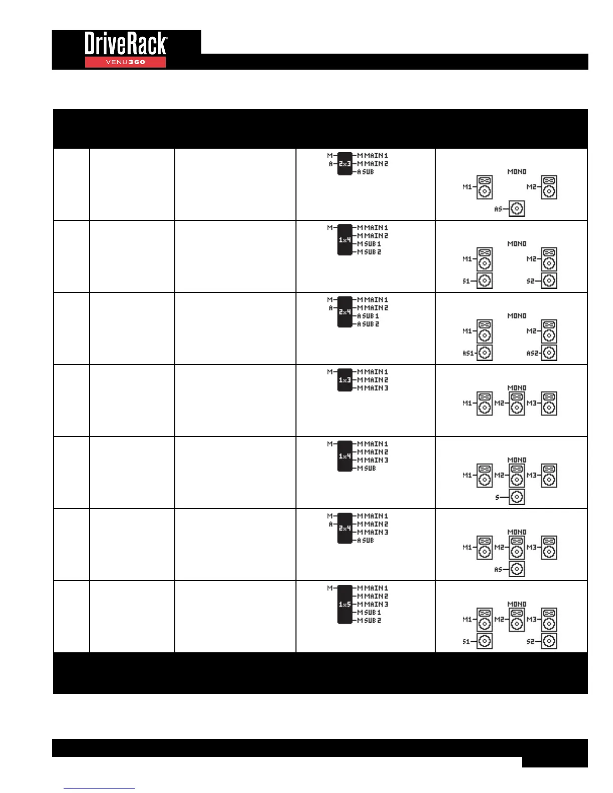 C=Center, R=Right, A=Aux