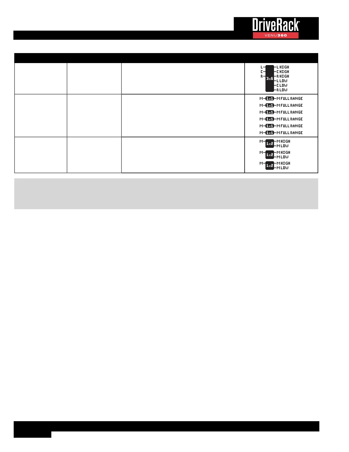 TIP: All factory presets have 1x1 (full range) crossovers configured for any remaining available outputs. The signal feeding