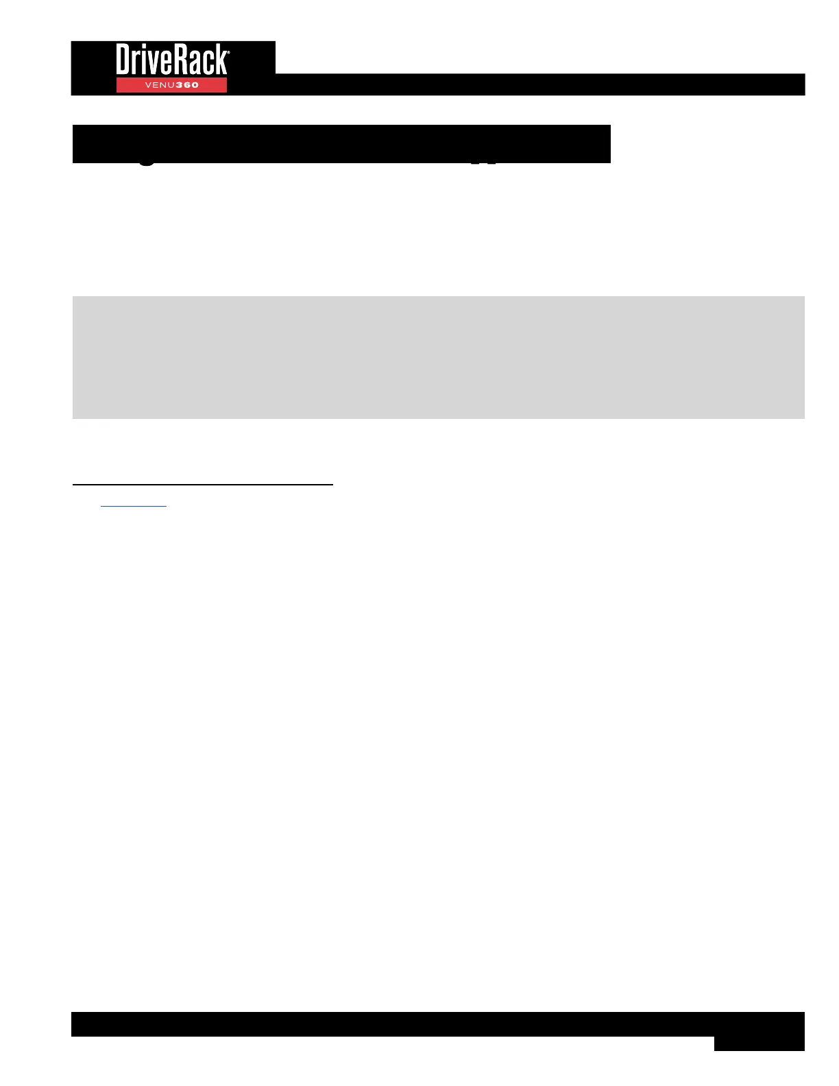 Visit dbxpro.com for the latest information on device requirements for the DriveRack VENU360 control application.