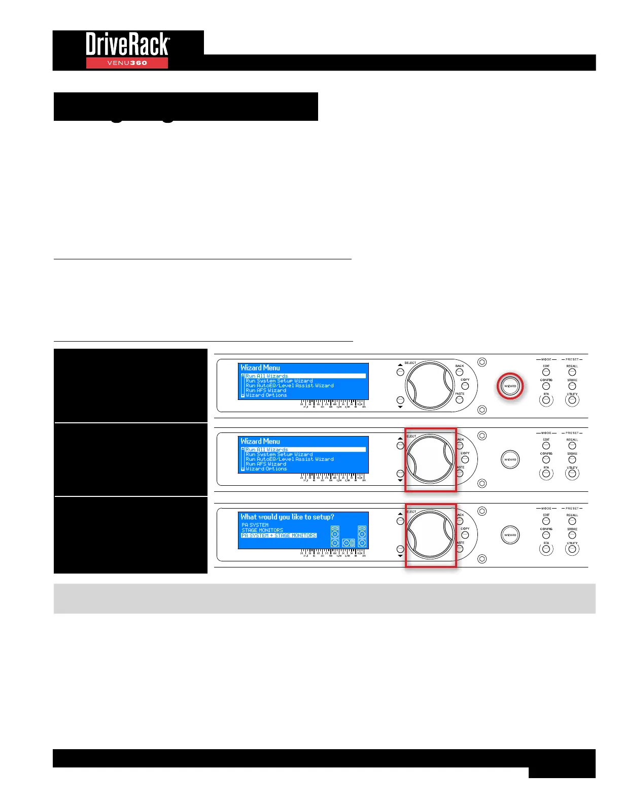 TIP: Pressing and holding the WIZARD button for ~2 seconds at any time during the Wizard procedure will abort the