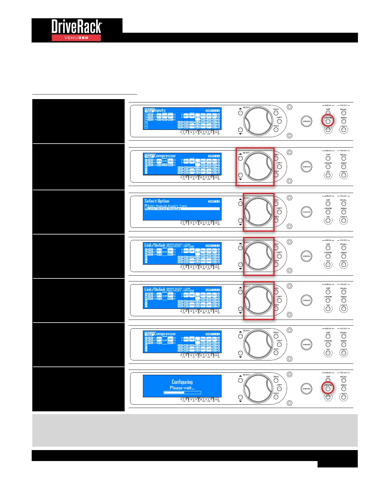 Processing modules can be linked and unlinked in Configuration mode to best suit the application. Most processing modules
