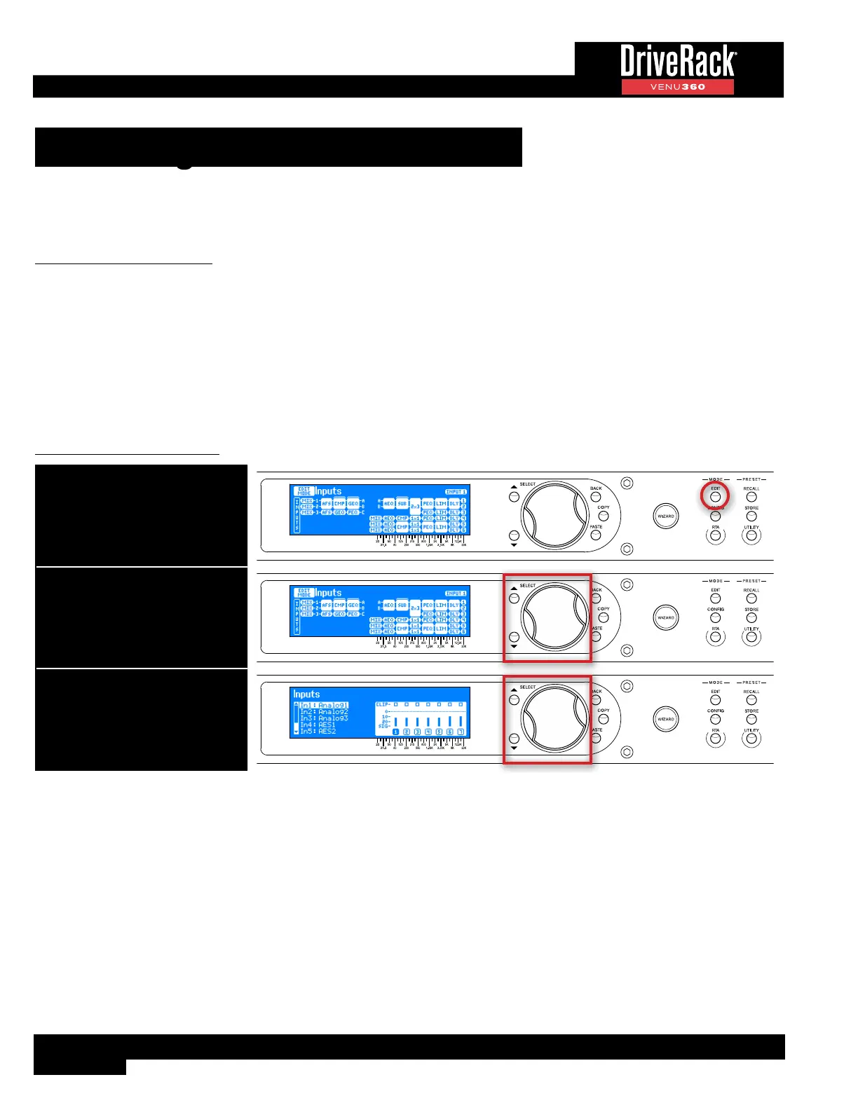 referencing the input channel assignments and provides direct input signal level metering and clip indication. These direct input