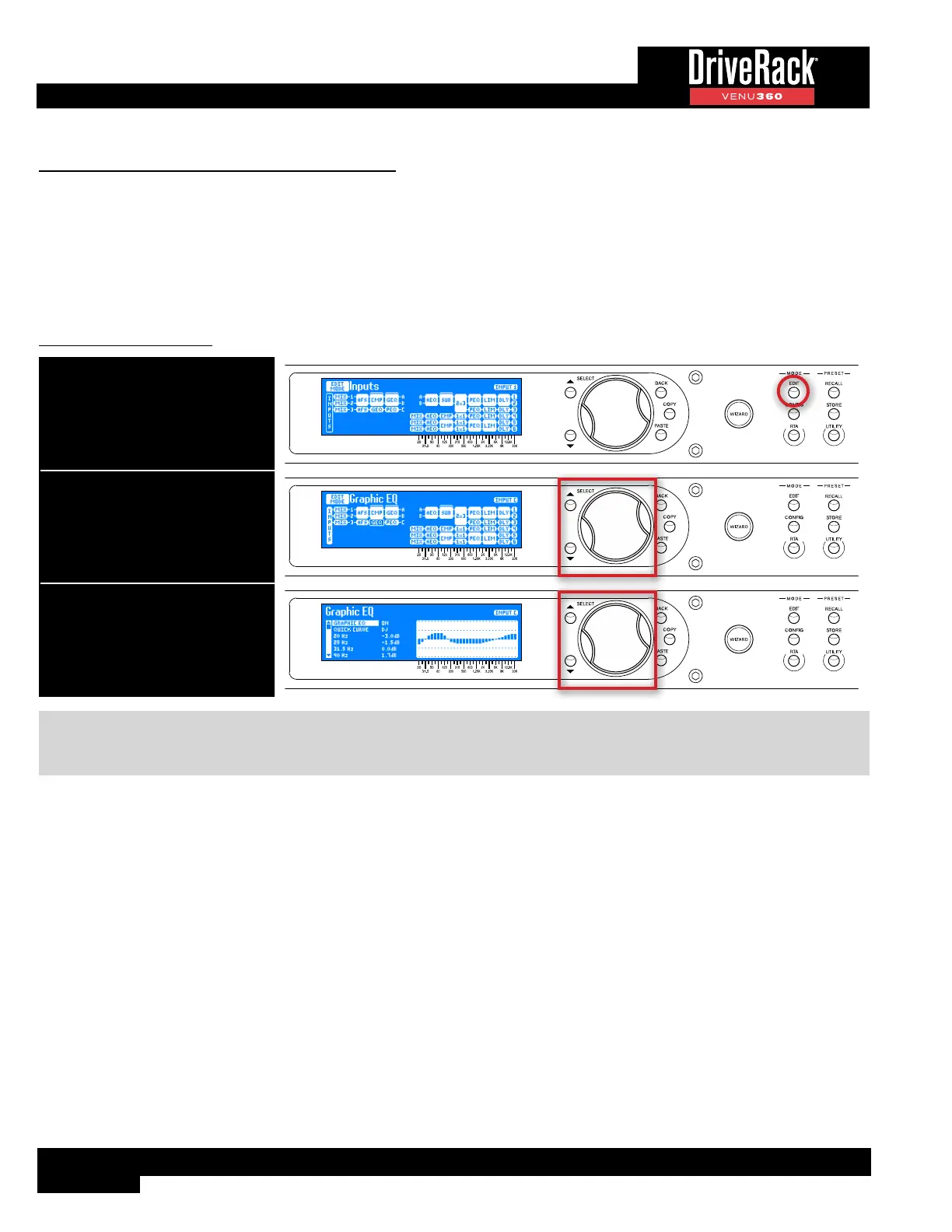 prefer to use this time-tested tool for system EQ. Manually edit the GEQ bands or select one of the “Quick Curves” options to