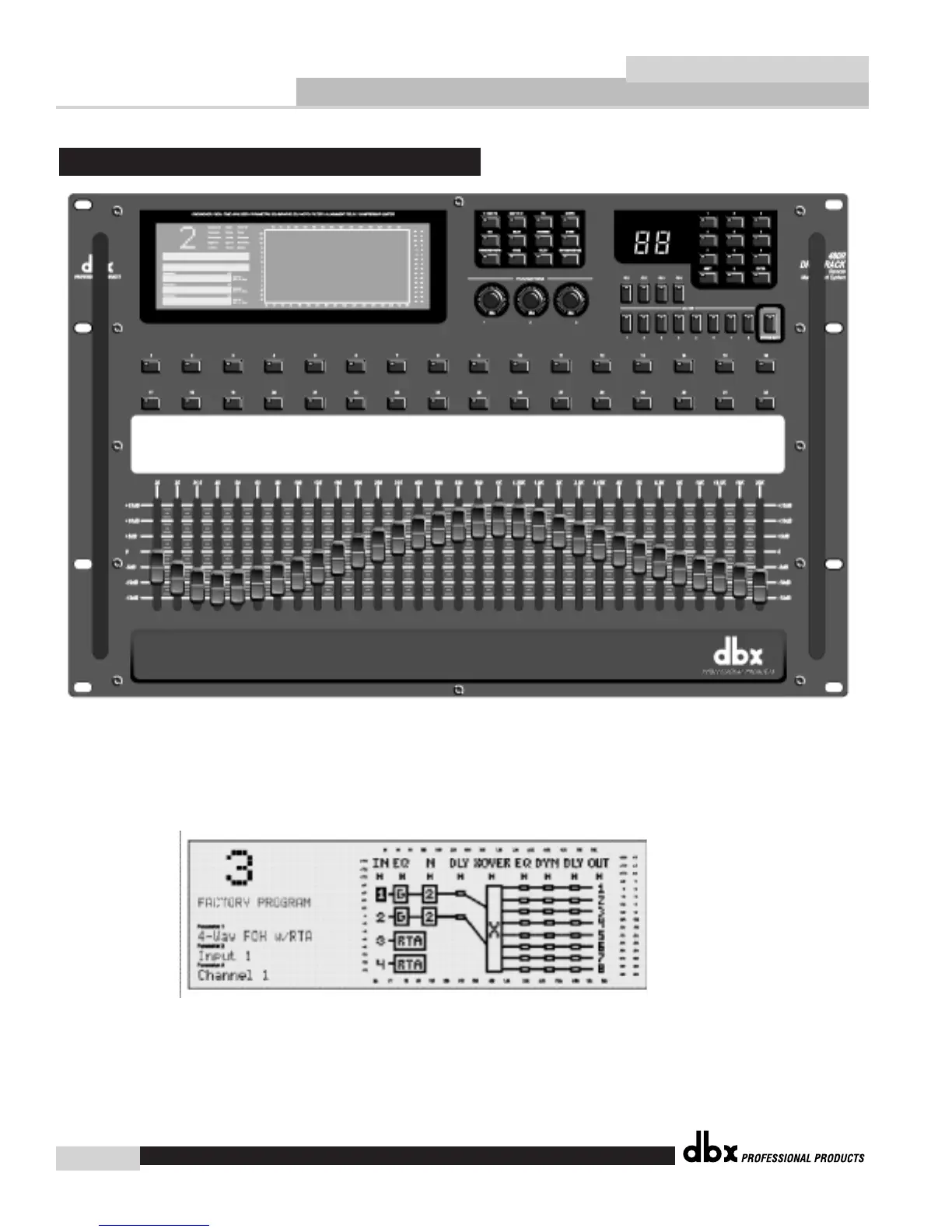 The large LCD display of the 480R DriveRack™ provides the user with all of the vital process-