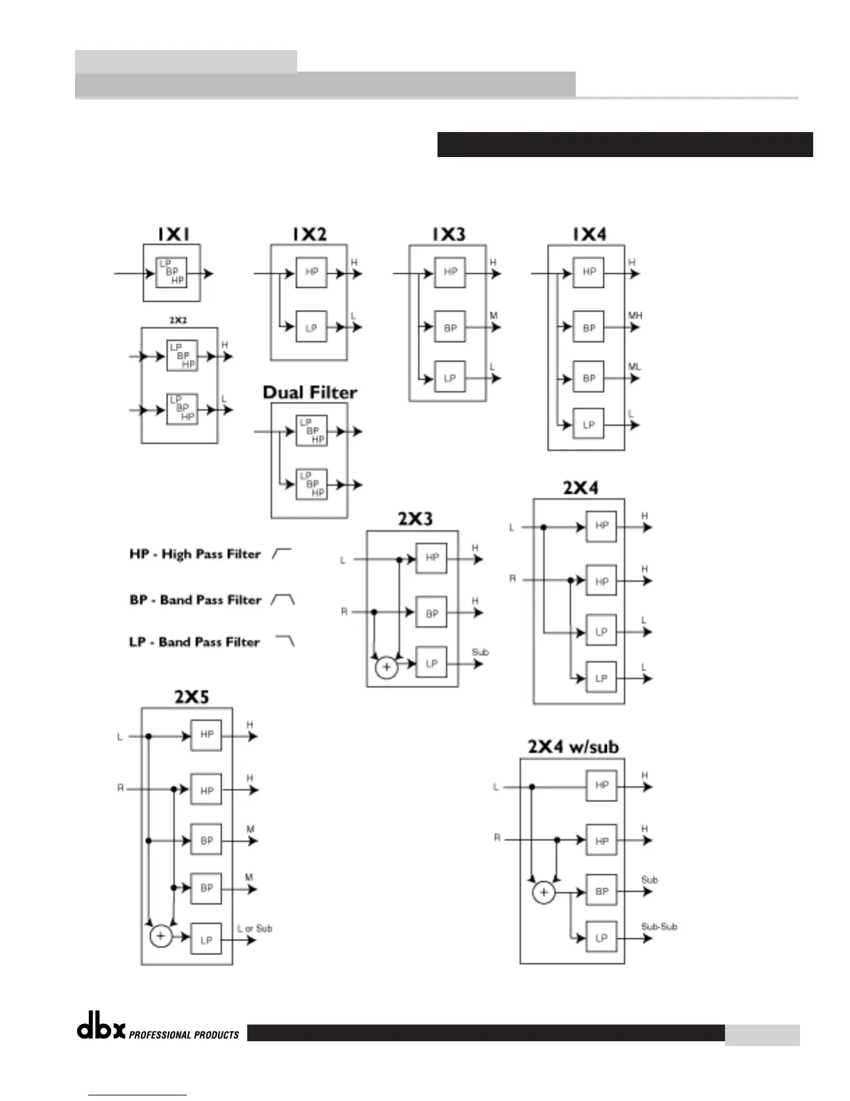 The following are crossover configurations found in the 480, 481 and 482 DriveRack™ units.