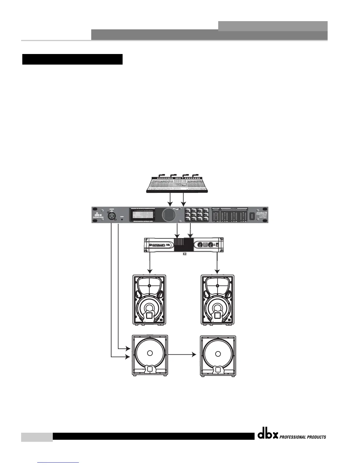 3. Make sure that the mixer and power amps are turned off prior to powering up the