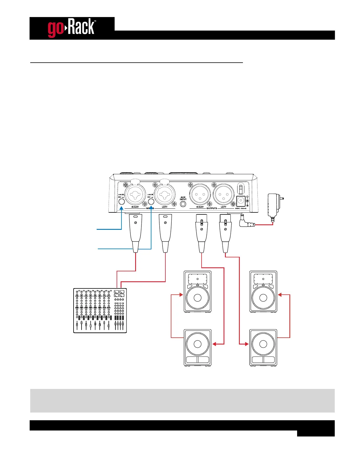 goRack if the mixer’s outputs are balanced. See ‘Audio Cable Diagrams’ on page 26 for more information on these