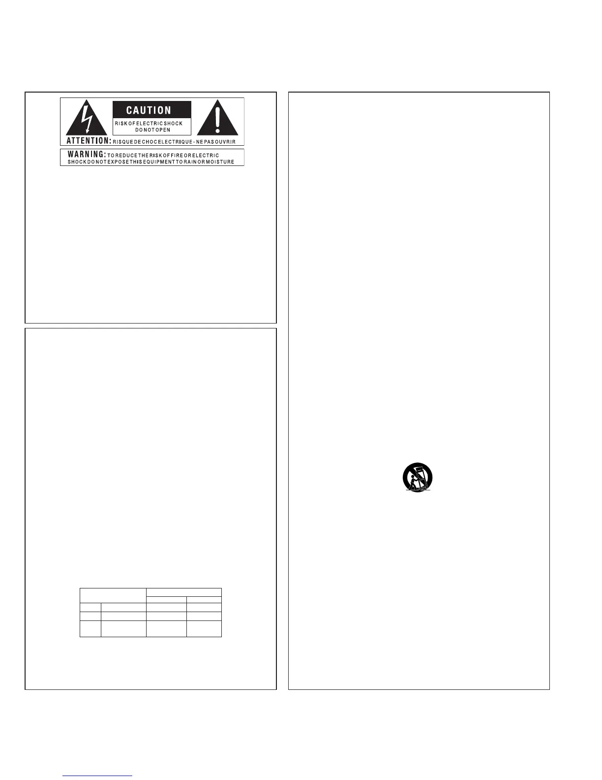 Refer all servicing to qualified service personnel. Servicing is required when the apparatus has been