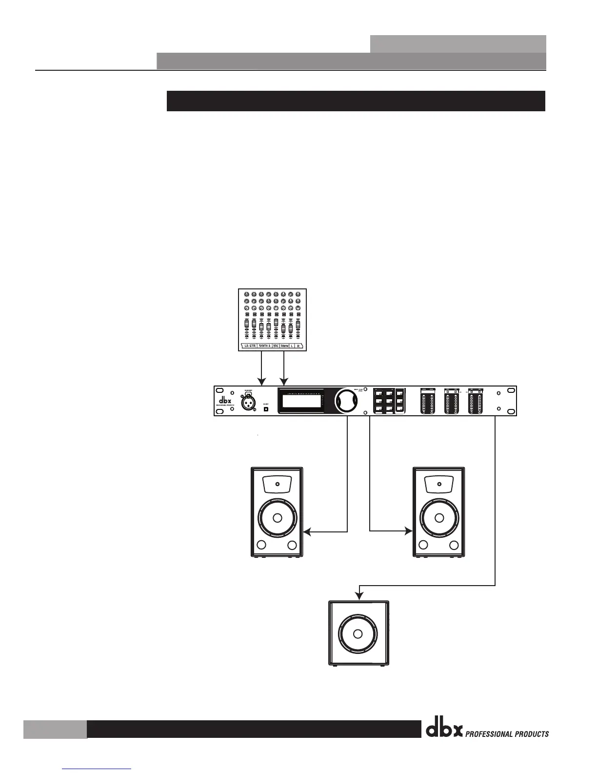 Connect the main outputs of the DriveRack® PX to the main powered speakers.