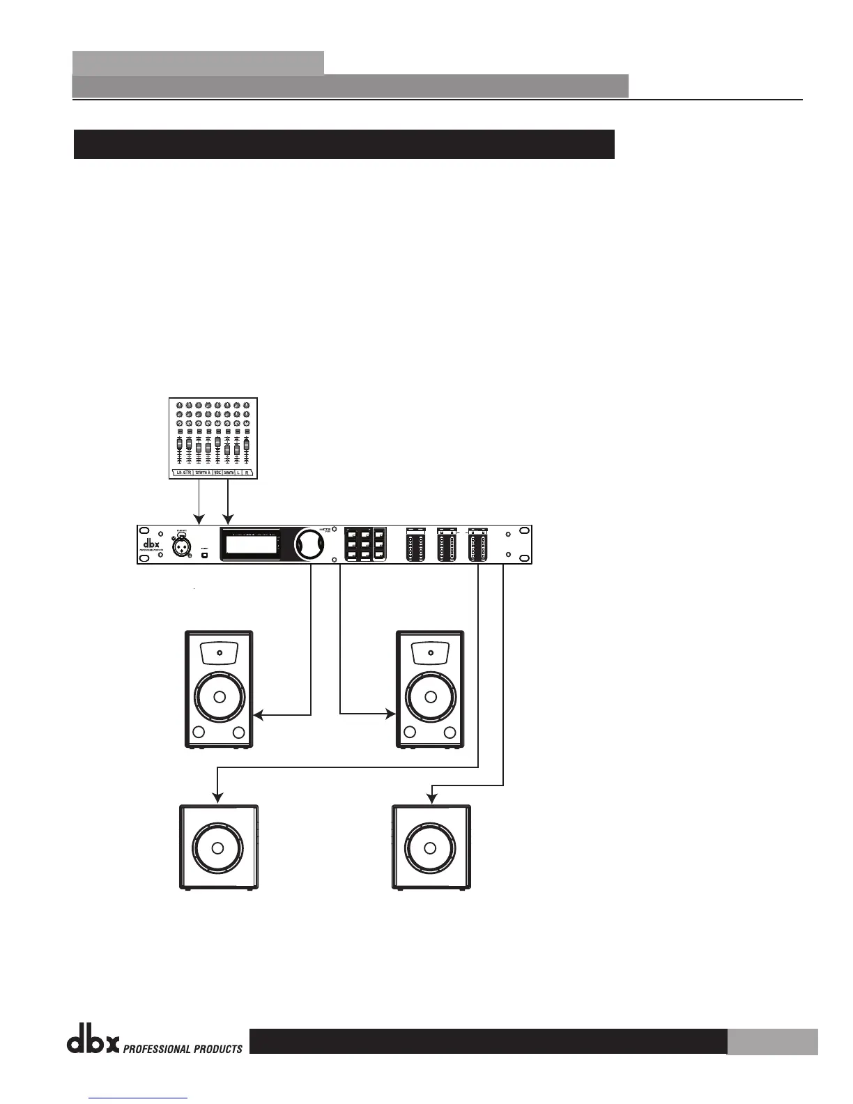 Connect the main outputs of the DriveRack® PX to the main powered speakers.