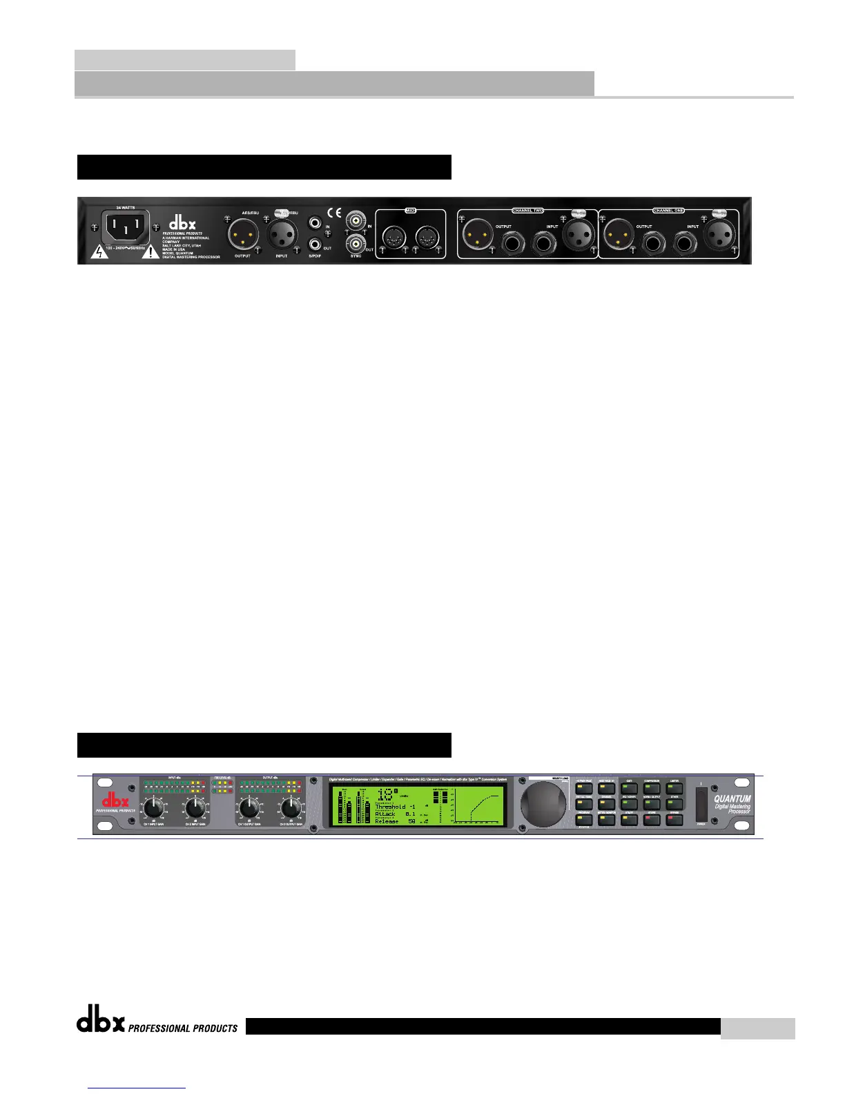 BNC connectors are provided for both clock in and out functions. The QUANTUM’s custom dbx