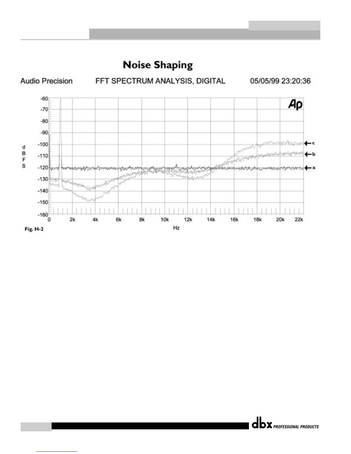 16-Bit TPDF dither. (a) Shape “off”, (b) with shape set to “S1”, (c) with shape set to “S2.” Parameters: Input -60dBFS, 1
