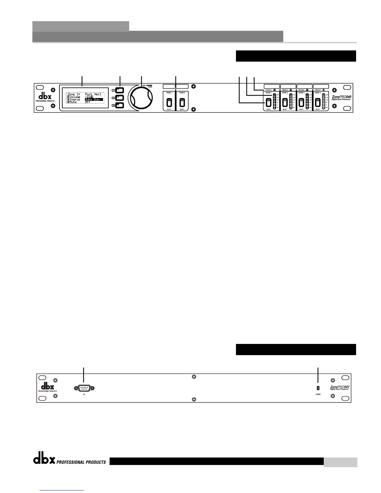This LED (when lighted), indicates that the ZonePro 641 is currently powered.
