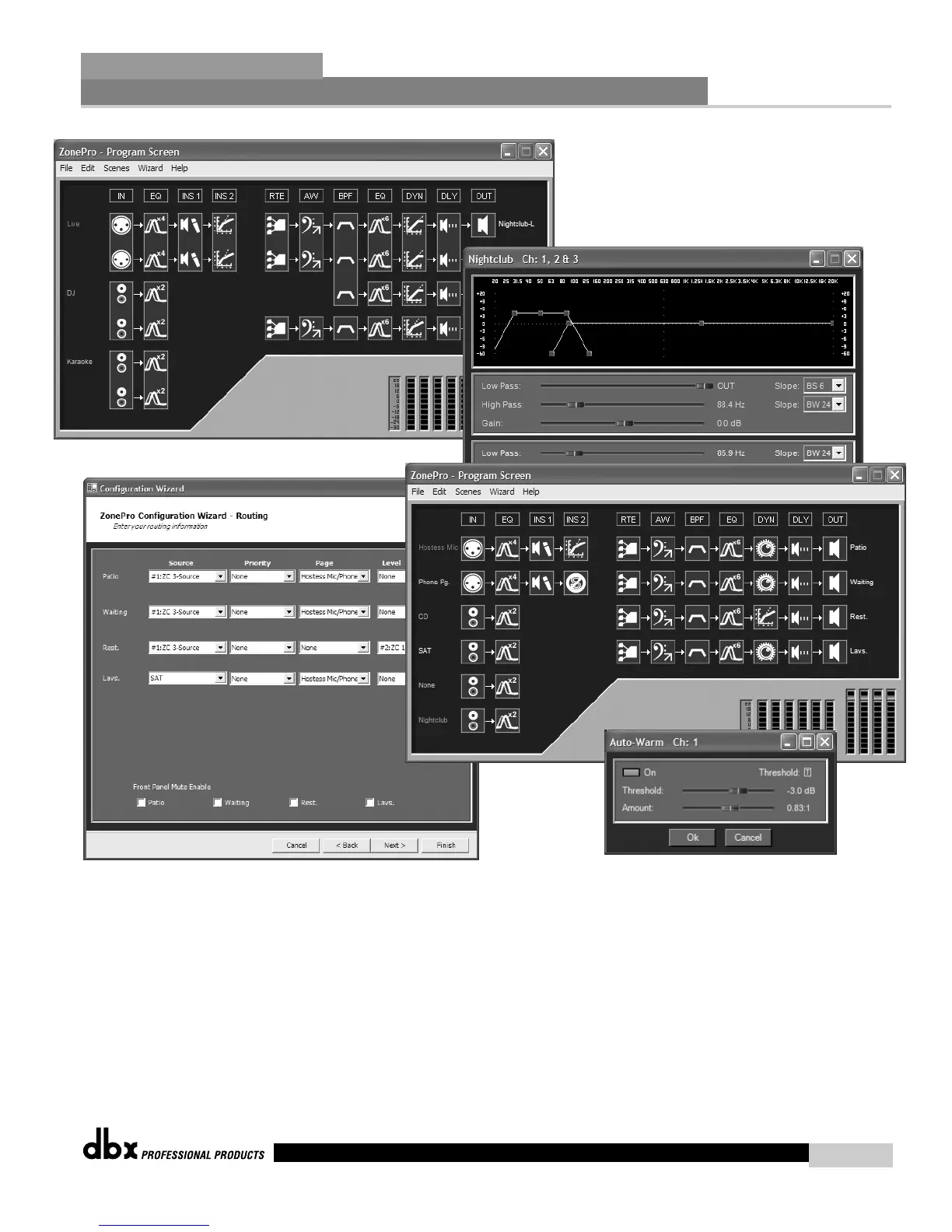 2. The ZCs in the nightclub are situated near the bar and allow source selection and volume control.