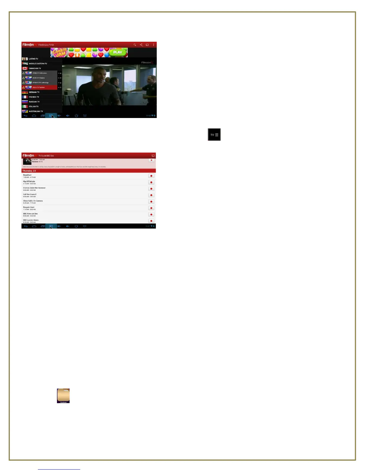 Some channels feature a guide displaying show times. Click the icon to the left of the channel to open the