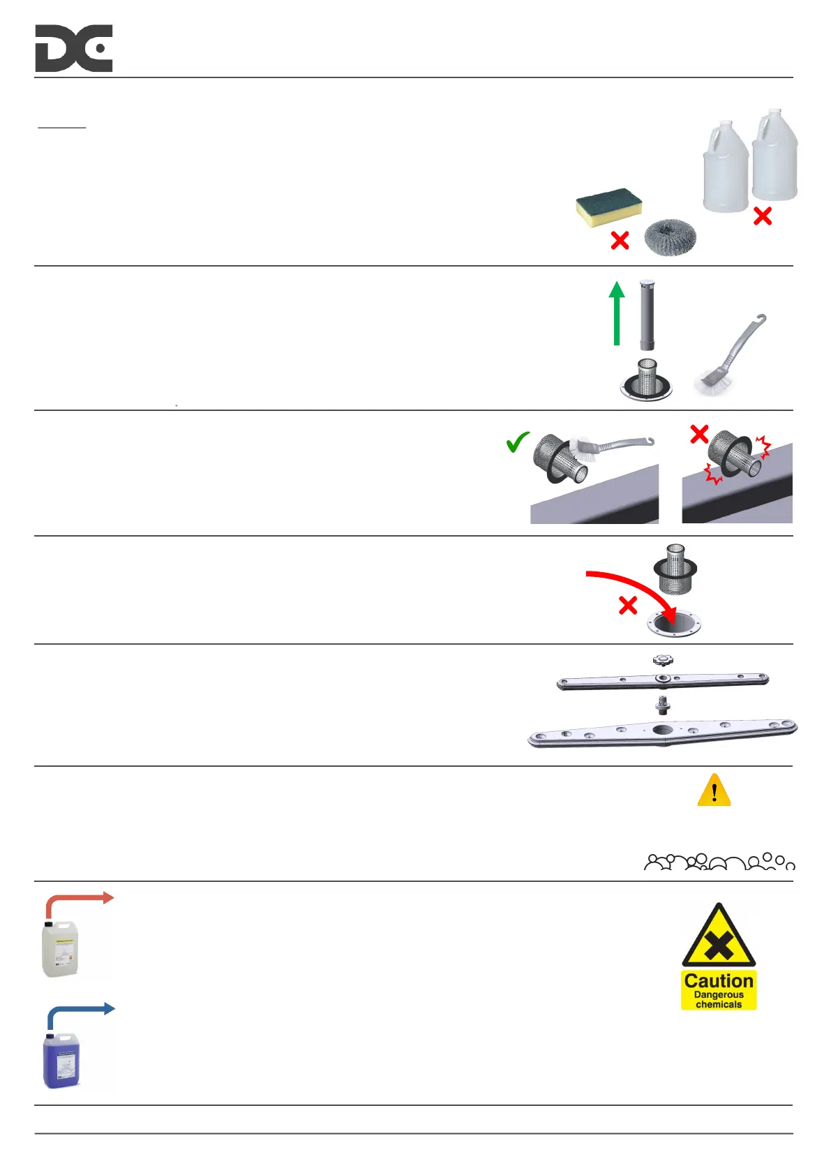 Regularly check the RINSE JETS and WASH JETS are clear of debris or limescale - remove if