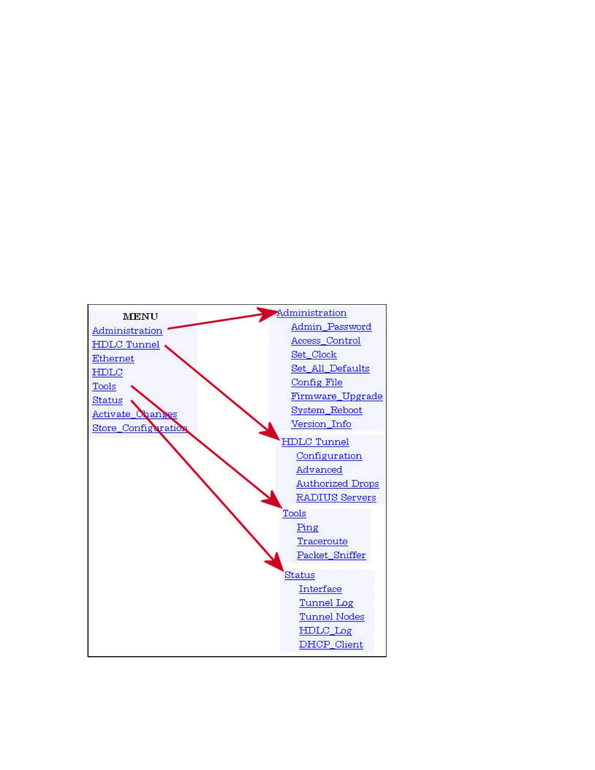 hand column shows the sub menus for the main menu selections that have sub menus. All pages