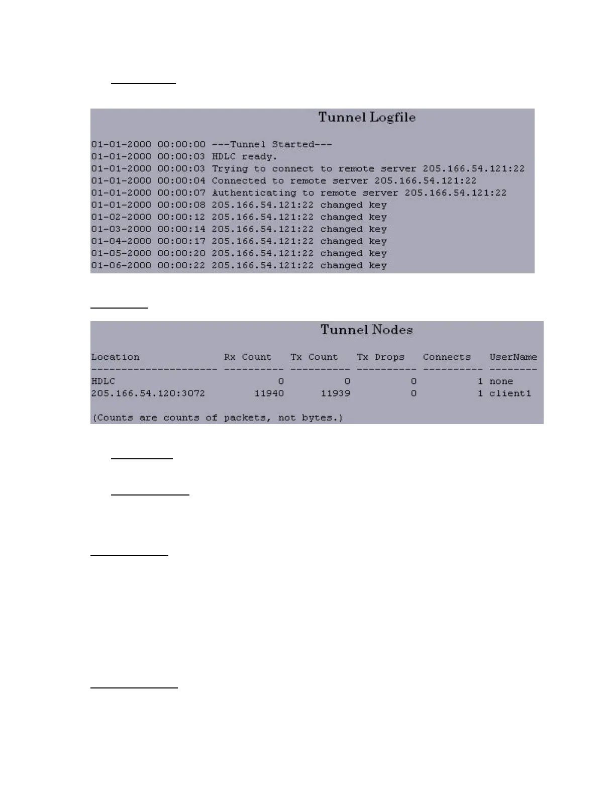 The Tunnel Logfile shows the status of the connections to the remote drop or host. Note that the