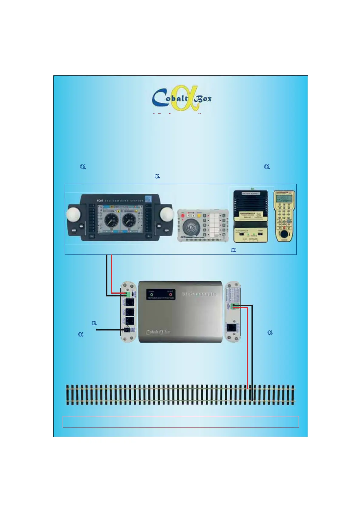This diagram shows how easy it is to add Alpha D Box to ANY DCC SYSTEM AT ALL. Brand-by-Brand diagrammes follow