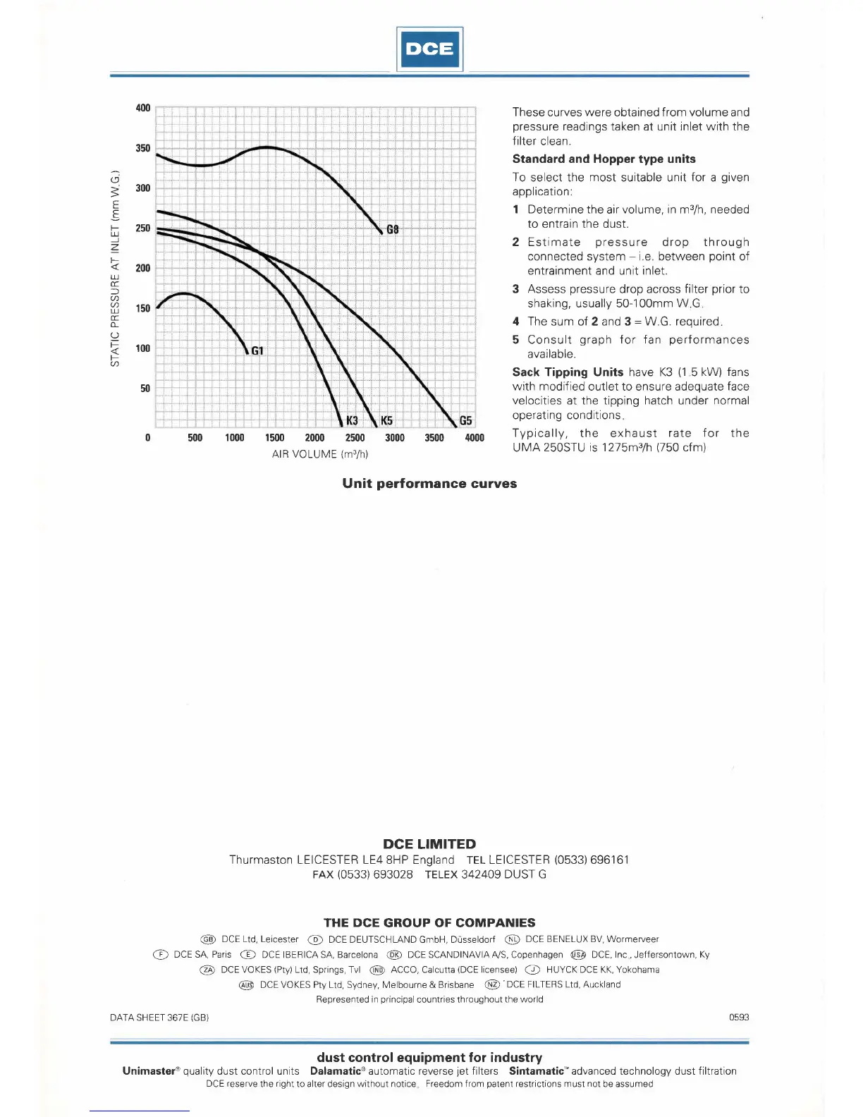 DCE Unimaster UMA 252V - Unit Performance and Selection; Fan Performance Curves; Unit Selection Guidance