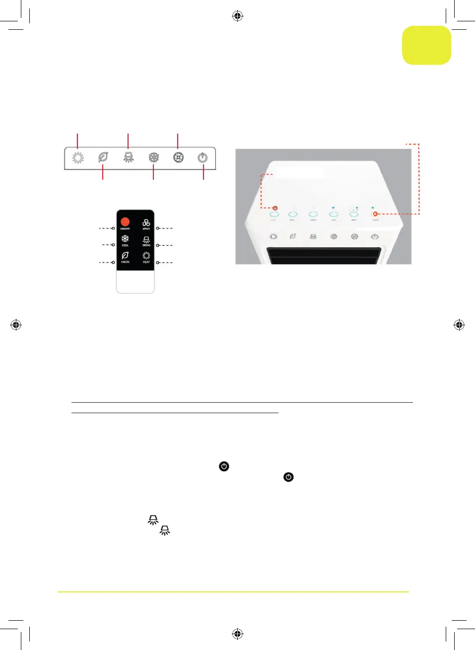 Per accendere il raffrescatore, premere l’interruttore sul pannello dei comandi
