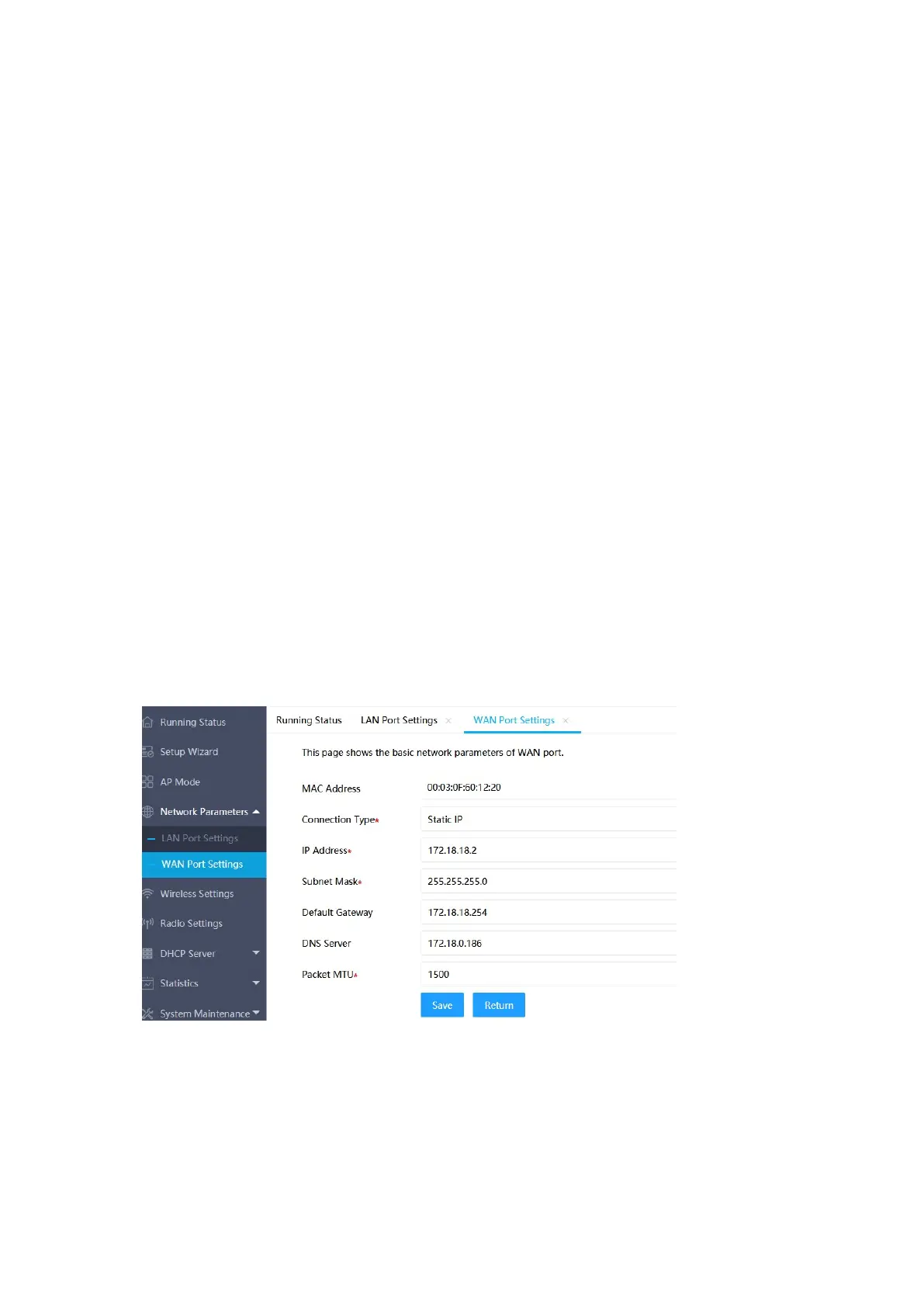 IP Address: The IP address of the AP to the WAN. Please enter the public IP