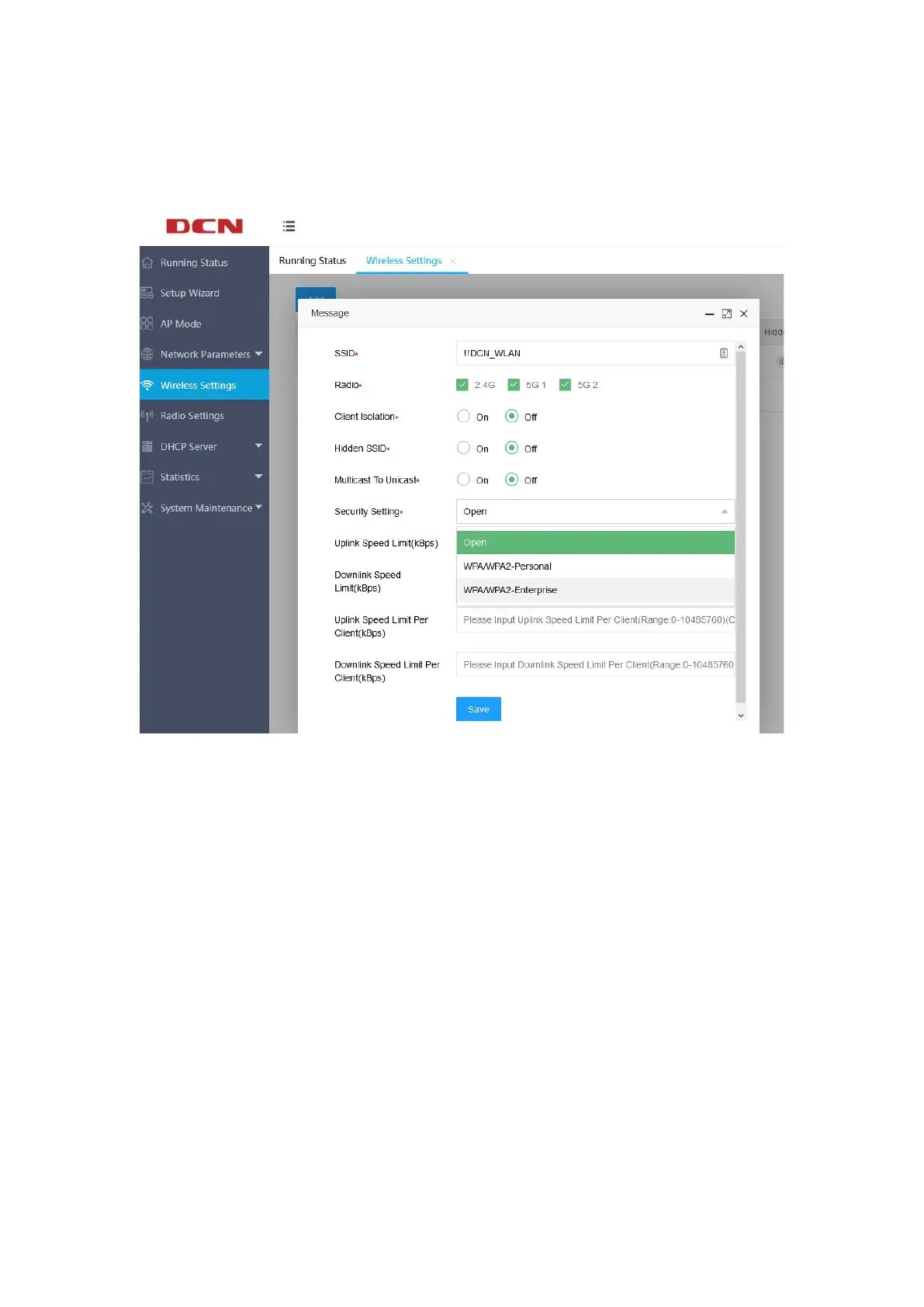 The OPEN mode does not need to set a password, and the wireless client can