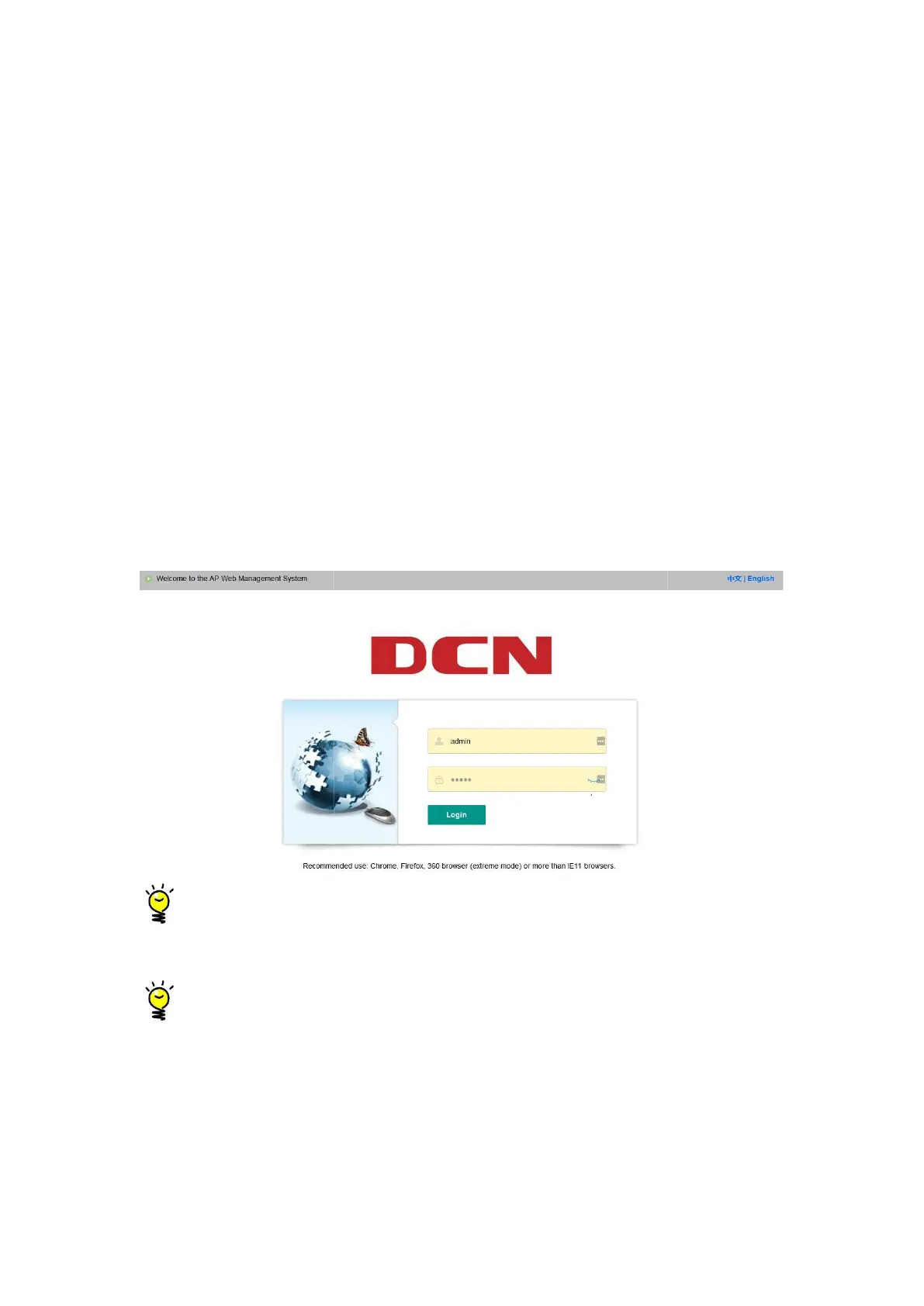 connect to the AP's SSID (the default is DCN_WLAN) to access the AP.