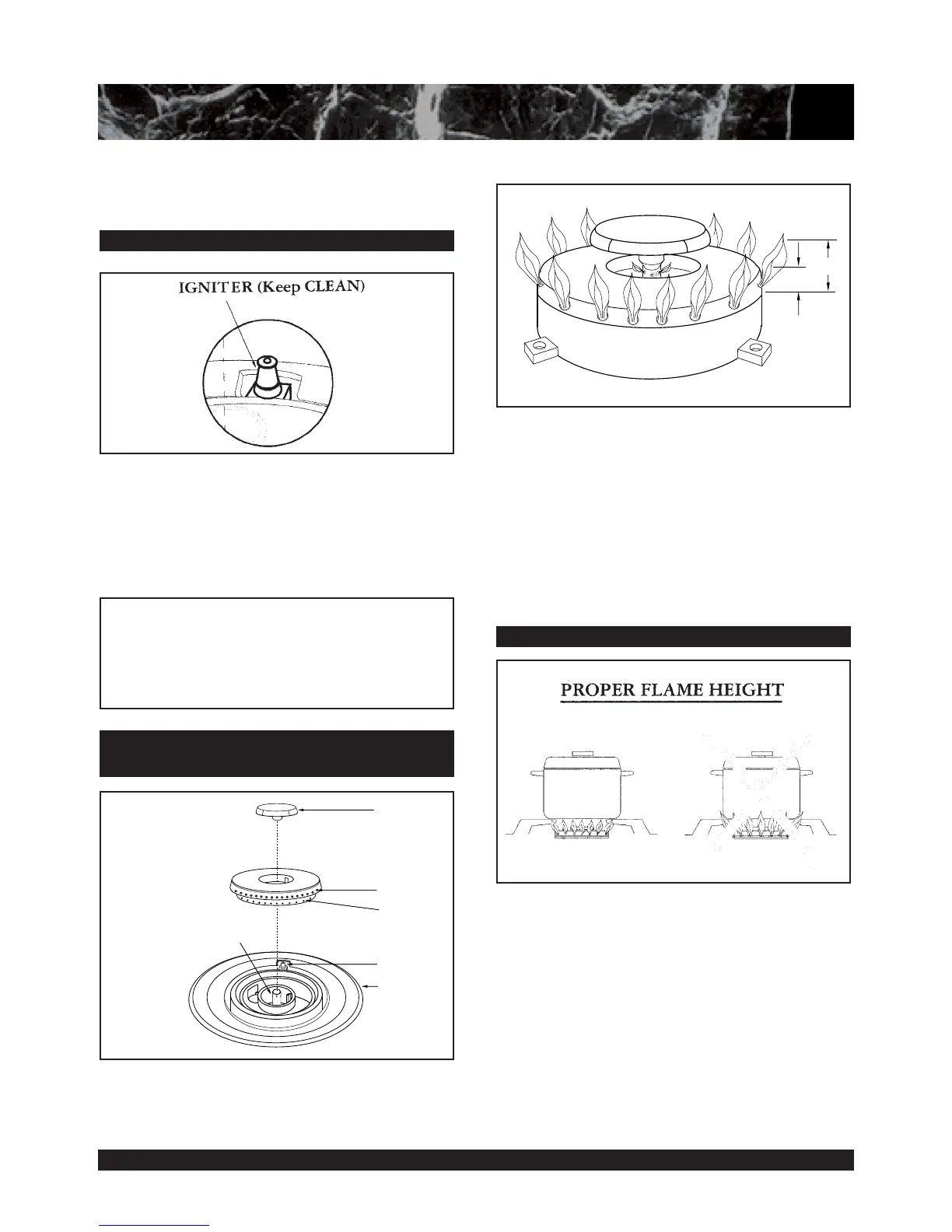 It is necessary to keep the burner ports and the igniters clean, for