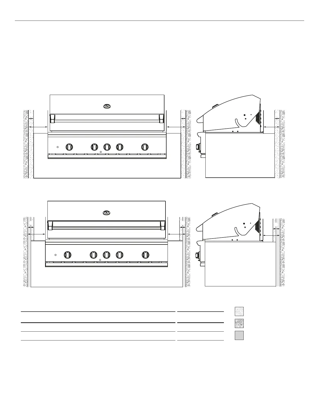 102mm min. non-combustible material plus an additional 203mm min. clearance between the grill and