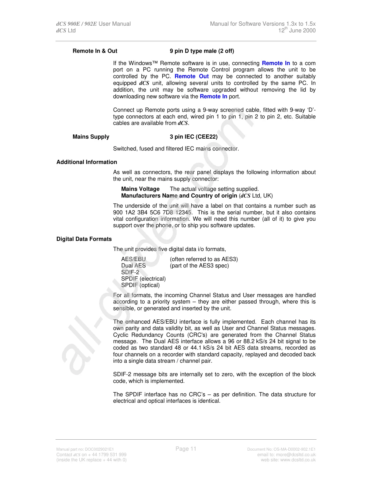 dCS 900E / 902E User Manual Manual for Software Versions 1.3x to 1.5x