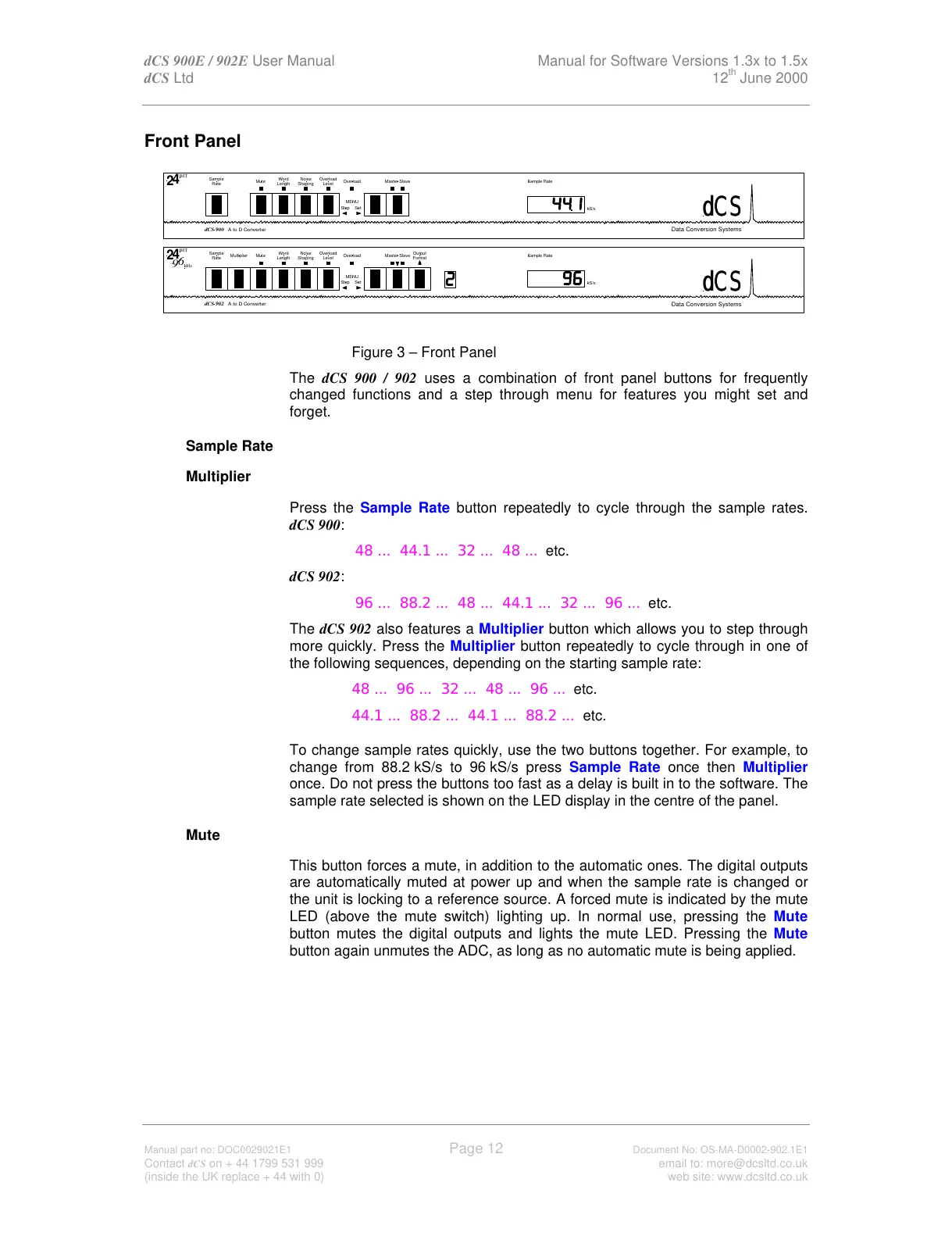 dCS 900E / 902E User Manual Manual for Software Versions 1.3x to 1.5x