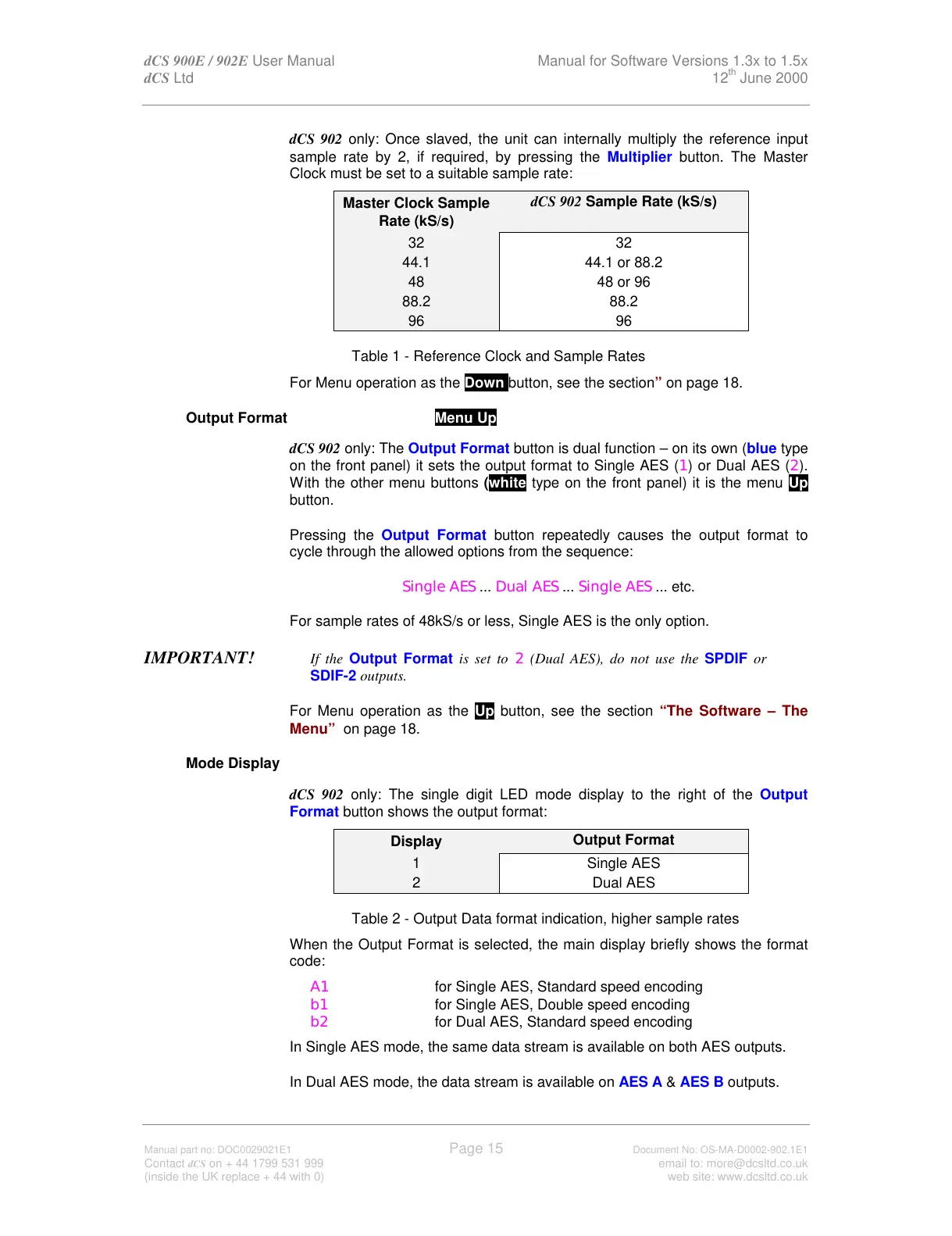 dCS 900E / 902E User Manual Manual for Software Versions 1.3x to 1.5x