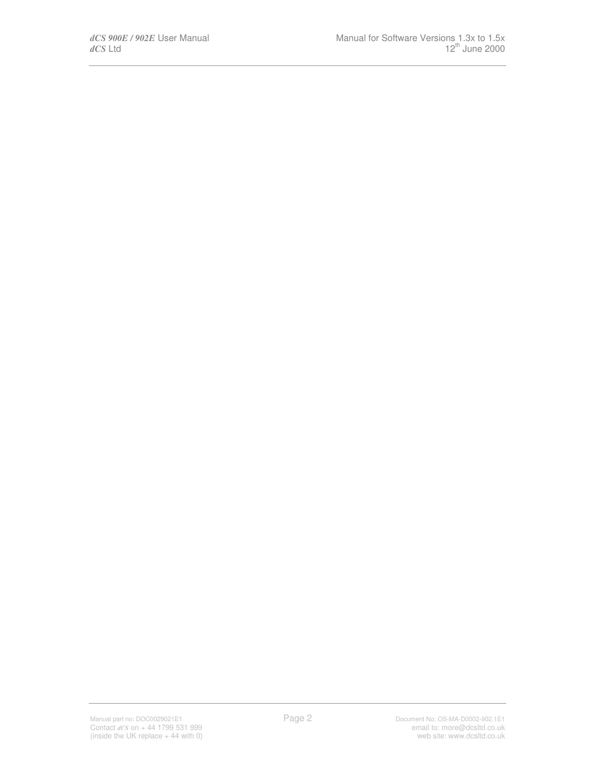 dCS 900E / 902E User Manual Manual for Software Versions 1.3x to 1.5x