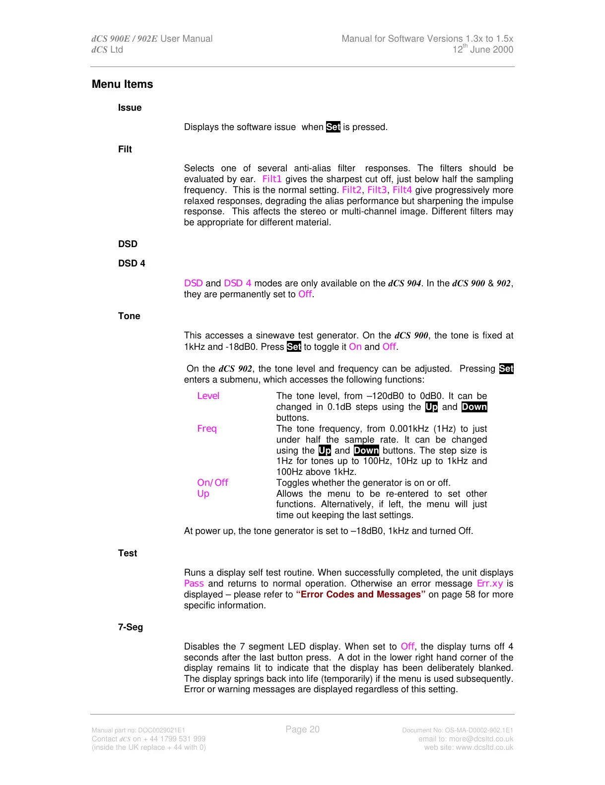 dCS 900E / 902E User Manual Manual for Software Versions 1.3x to 1.5x