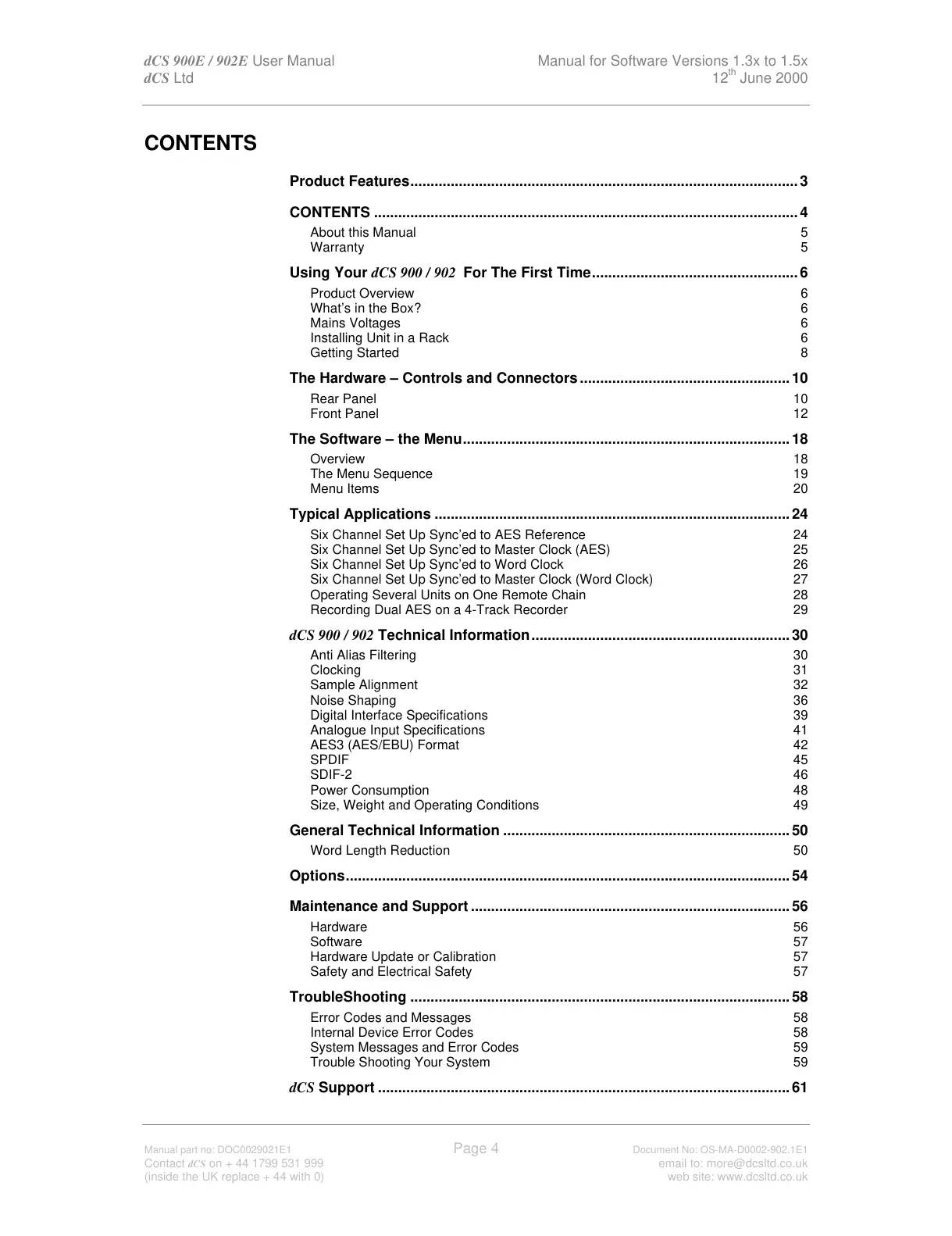 dCS 900E / 902E User Manual Manual for Software Versions 1.3x to 1.5x