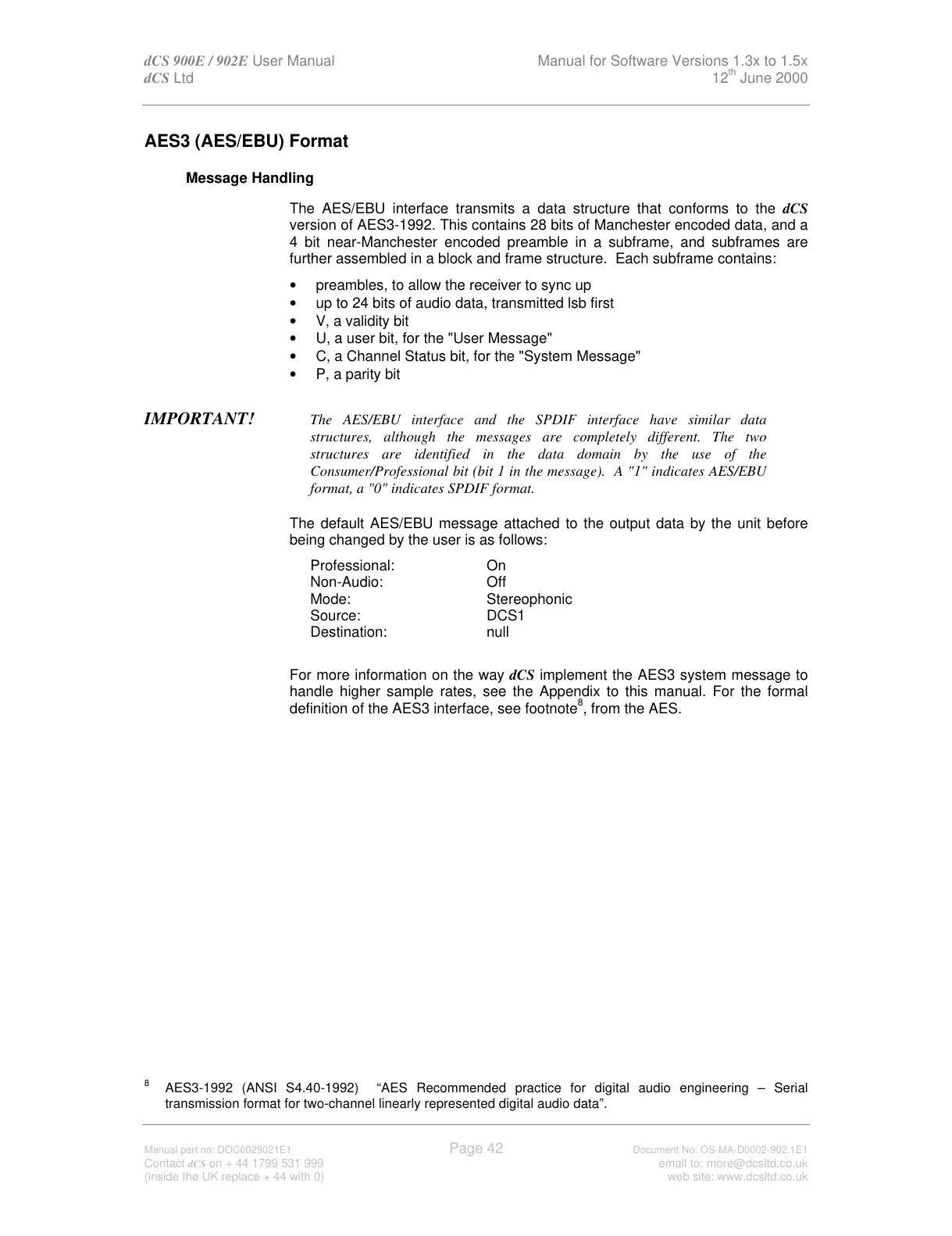 dCS 900E / 902E User Manual Manual for Software Versions 1.3x to 1.5x