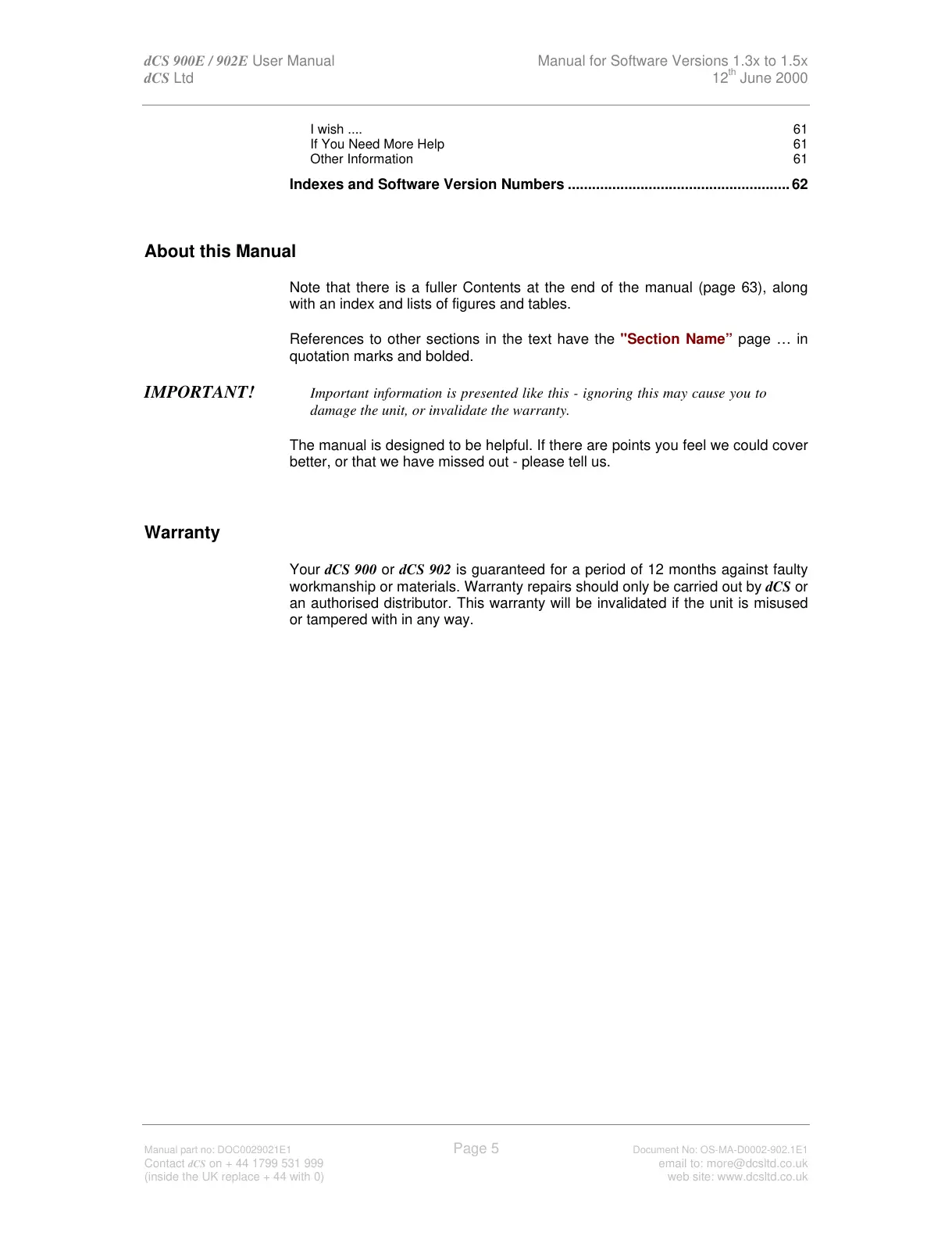 dCS 900E / 902E User Manual Manual for Software Versions 1.3x to 1.5x