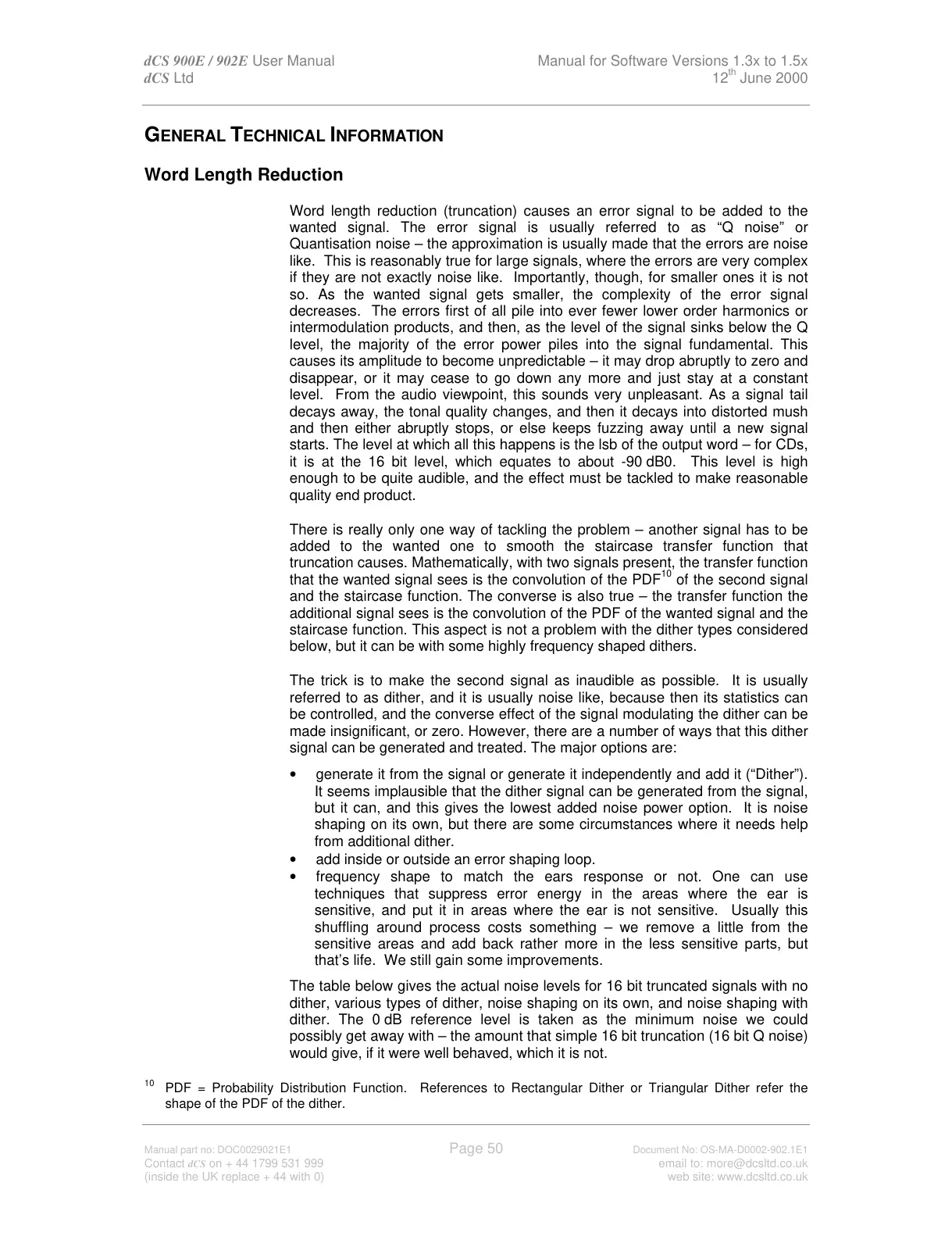 dCS 900E / 902E User Manual Manual for Software Versions 1.3x to 1.5x