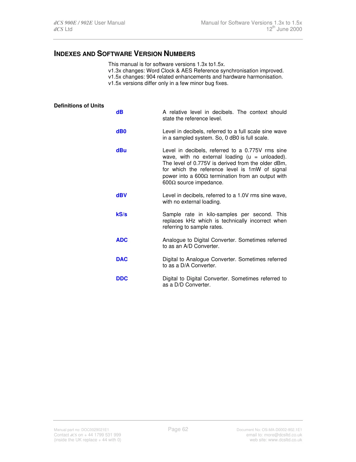 dCS 900E / 902E User Manual Manual for Software Versions 1.3x to 1.5x