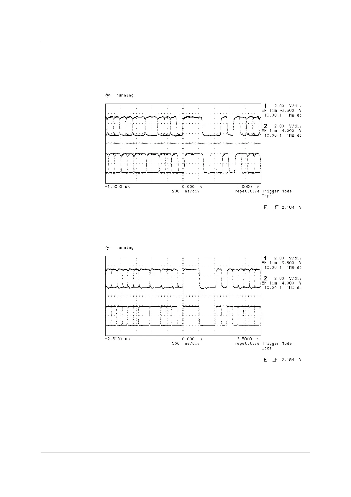 is better than 40ns. Input is at the top of the displays, output is at the bottom.