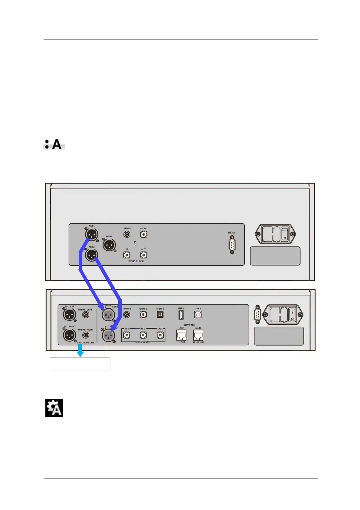 • Connect the AES1 (or AES A) output on your source equipment to the AES1 input on the DAC’s